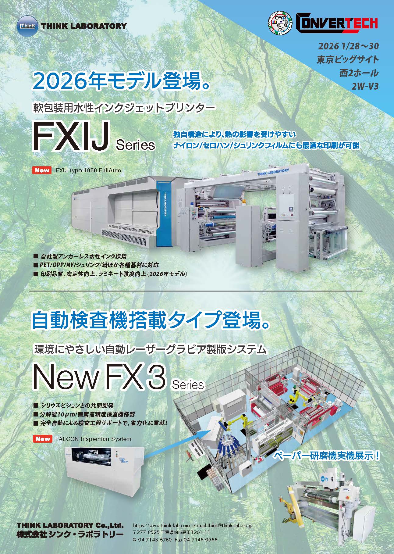 1月28日〜30日に東京ビッグサイトで開催されるCONVERTECH2026に出展いたします。 https://www.cj-exhibition.com 会期:2026年1月28日(水)〜30日(金) 時間:10:00〜17:00 会場:東京ビッグサイト 西・南ホール ブース:西ホール2W-V03 展示内容:グラビア製版装置「NewFX」、ペーパー研磨機(実機展示)、自動版面検査機「Falcon」、 水性軟包装インクジェット印刷機「FXIJ(2026年モデル)」、DLCなど
